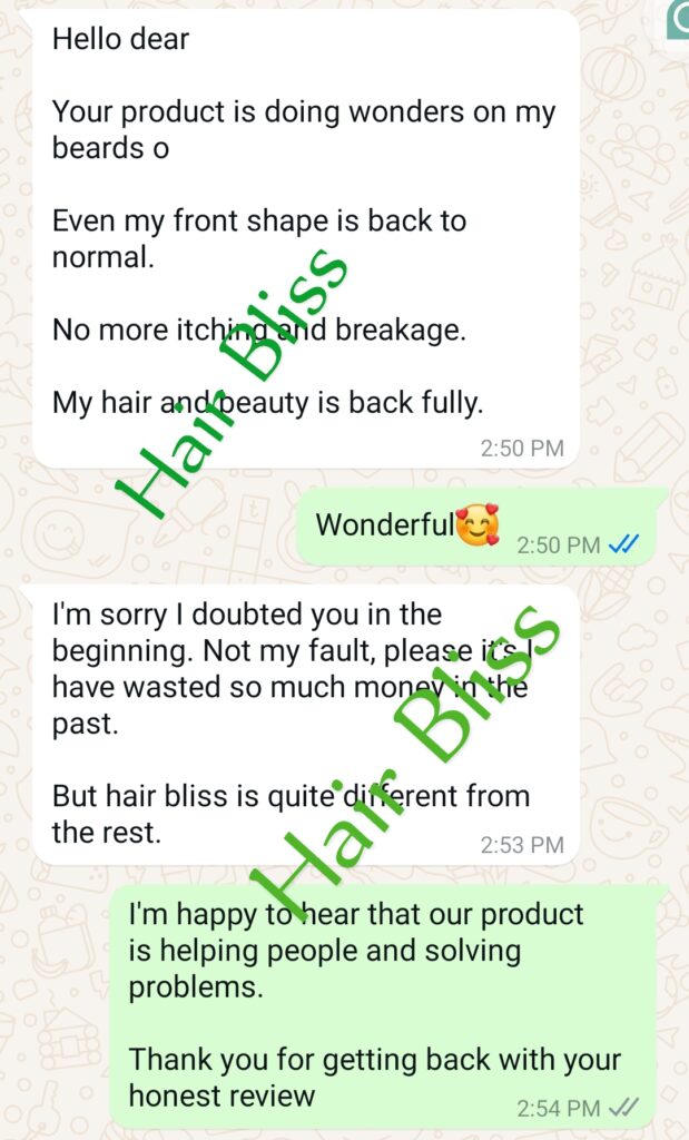 Hair Bliss is an advanced hair growth product formulated with Basara Arabs’ secrets for all forms of hair problems be it the front hairline, balding and edges, restoring damaged hair, and resolving all issues concerning hair loss.