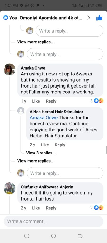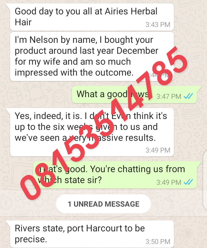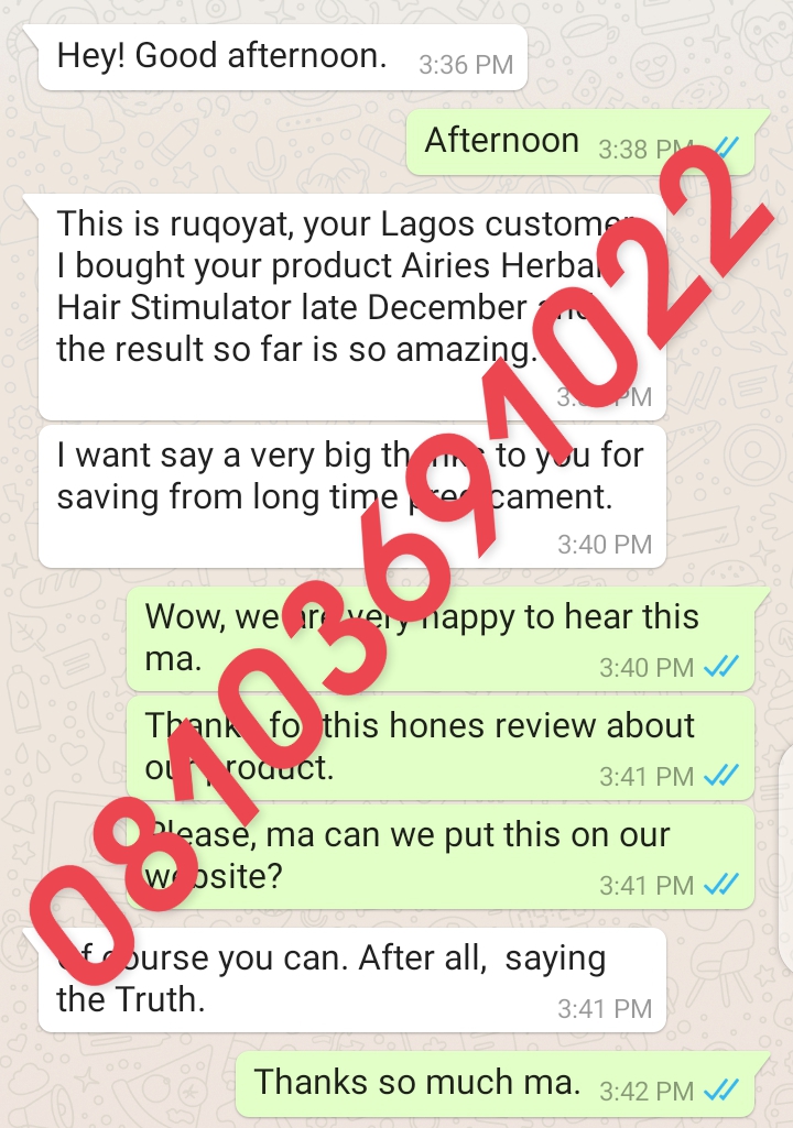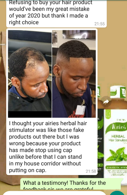 ⭐⭐⭐⭐⭐ Initially, when i saw this product online i was so skeptical about it before i later made up my mind to give it a trial and i thank God i didn’t waste my money like i used to do in the past. indeed, this AIRIES HERBAL HAIR STIMULATOR is the best hair product i ever come across in recent times. MR Salahudeen Mustafa from Kaduna